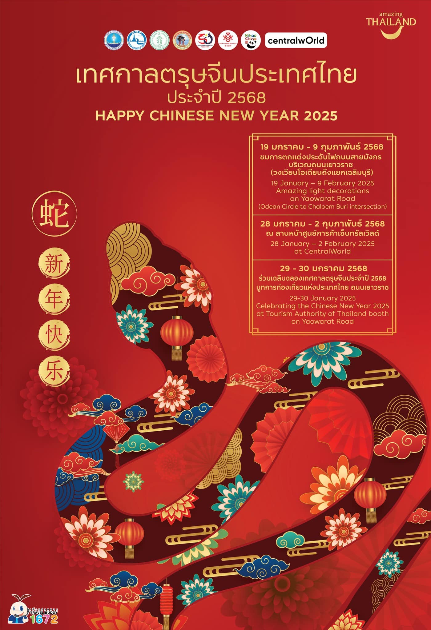 ตรุษจีนเยาวราช 2568 กลับมาอีกครั้ง พร้อมความยิ่งใหญ่ที่สะท้อนเอกลักษณ์ของเยาวราชในฐานะไชน่าทาวน์อันดับหนึ่งของประเทศไทย งานนี้จัดขึ้นระหว่างวันที่ 19 มกราคม – 9 กุมภาพันธ์ 2568 บนถนนเยาวราช ภายใต้แนวคิด อิกไนท์ ยัวร์ เซนส์ส เอนเบรซ อาวร์ ทู คัลเจอร์ส (Ignite Your Senses Embrace Our Two Cultures) เพื่อเฉลิมฉลองครบรอบ 50 ปี ความสัมพันธ์ทางการทูตระหว่างไทยและจีน การประดับไฟและกิจกรรมต่าง ๆ ในงาน จะทำให้คุณได้ดื่มด่ำกับบรรยากาศตรุษจีนที่งดงามและหลากหลายความหมาย