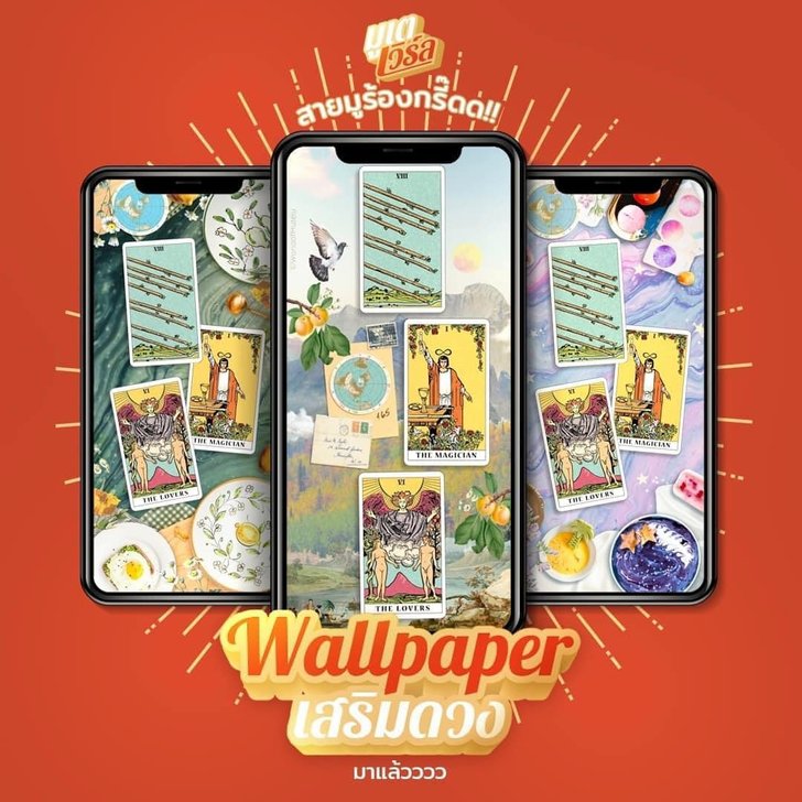ตอบว่าเพราะเราใช้วอลเปเปอร์ของร้านตัวเองได้หรือเปล่า จริงๆ เริ่มแรกมันมีกระแสเกี่ยวกับวอลเปเปอร์อยู่แล้วในกลุ่มดูดวงออนไลน์ชื่อว่า Tarot & Beyond แต่มันเริ่มมาไวรอลตอนที่ แม่หมอแอเรียล จากเพจ นางเงือกดูดวง ทำวอลเปเปอร์แจกและมีคนมารีวิวว่ามันได้ผลจริงเป็นจำนวนมาก มีคนทักมาหลังไมค์ว่าอยากให้มีการจัดแบบคัสตอมรายบุคคล