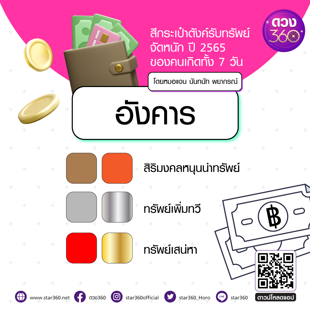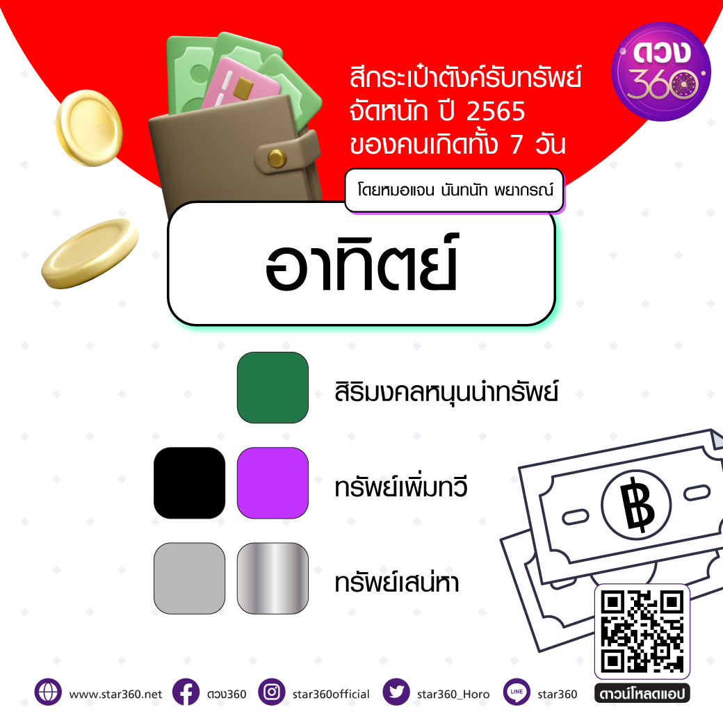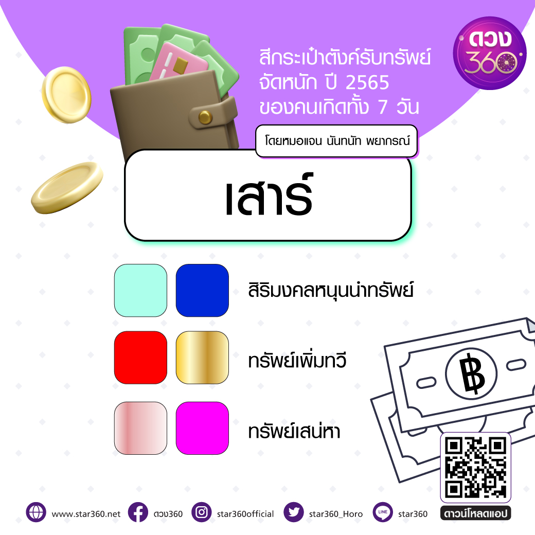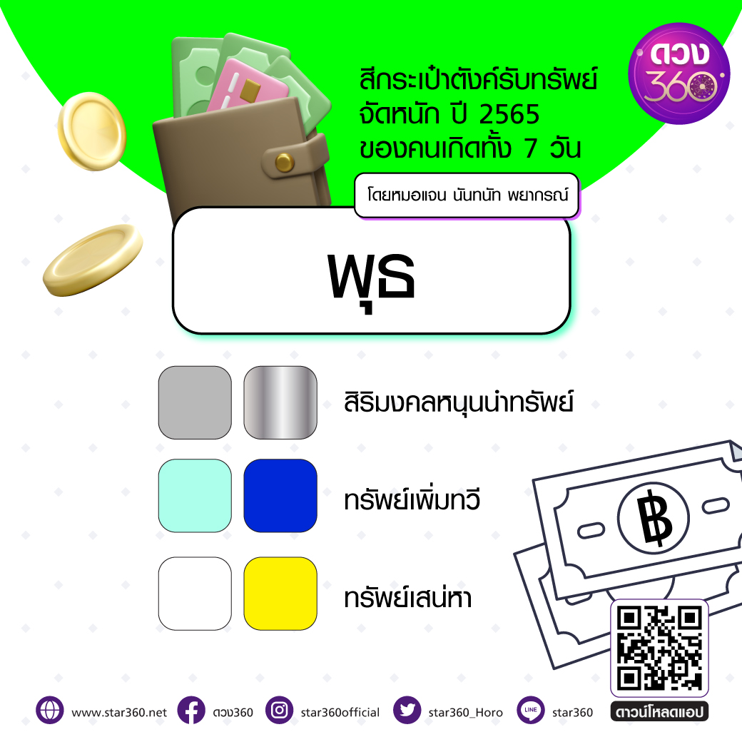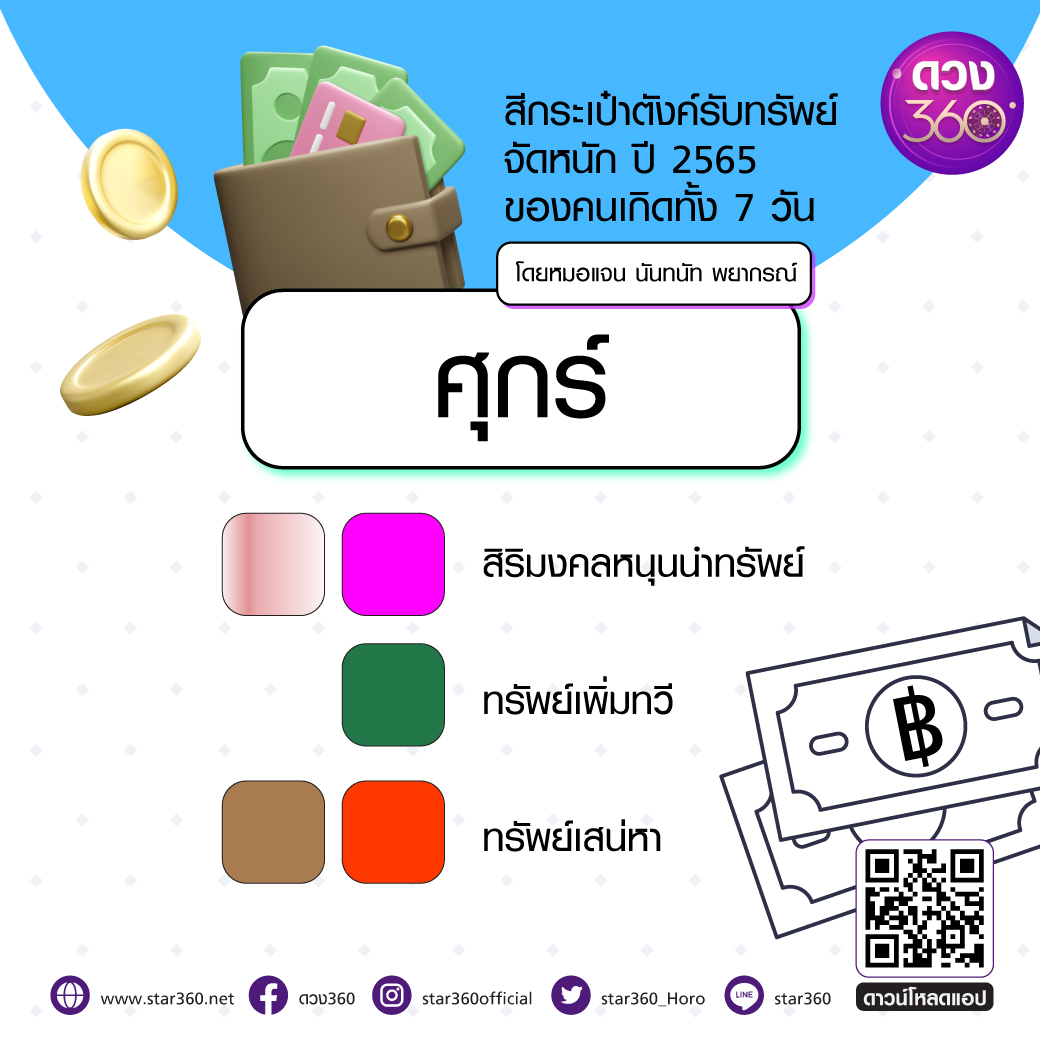 สีกระเป๋าตังค์รับทรัพย์จัดหนักปี 2565 ของคนเกิดทั้ง 7 วัน โดยหมอแจน นันทนัท