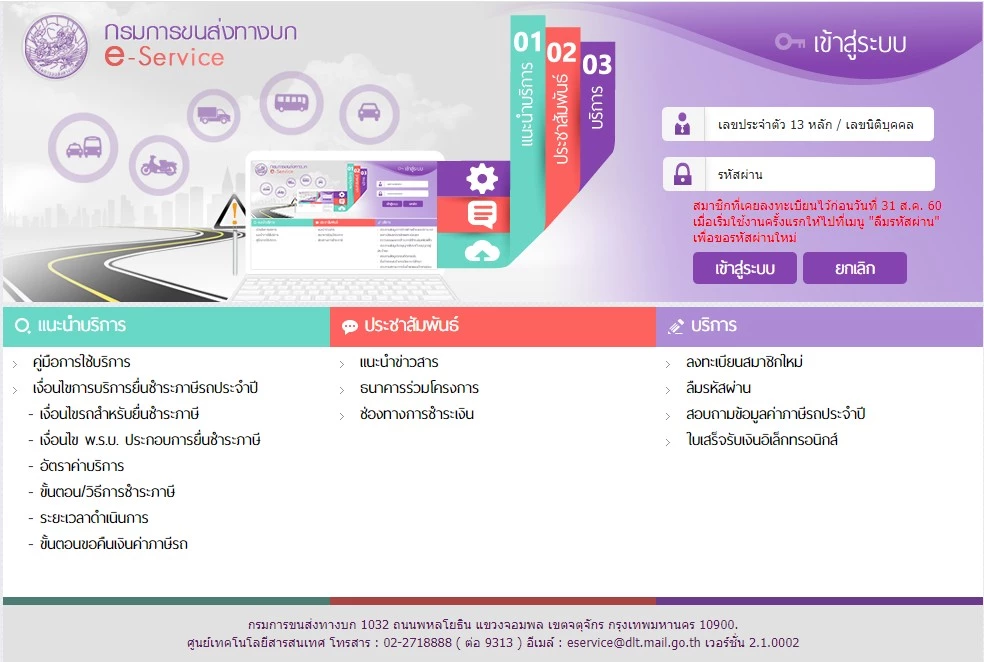 - ไปที่เว็บไซต์ https://eservice.dlt.go.th