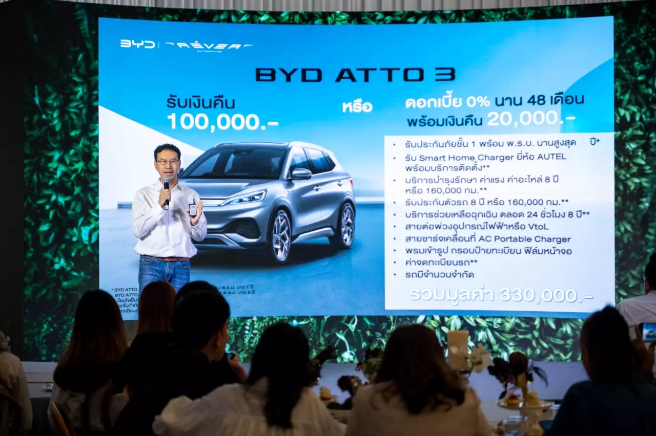 นายประธานวงศ์ พรประภา ประธานเจ้าหน้าที่บริหาร กลุ่มธุรกิจเรเว่ กล่าวว่า ในปี 2023 ที่ผ่านมารถยนต์ไฟฟ้า BYD มีส่วนแบ่งการตลาดเป็นอันดับหนึ่งในกลุ่มรถยนต์ไฟฟ้า ซึ่งมียอดจดทะเบียนมากถึง 40% โดย BYD ATTO 3 มียอดจดทะเบียนอันดับ 1 ในเซ็กเมนต์เดียวกัน ซึ่งมียอดจดทะเบียนในปี 2566 อยู่ที่ 19,214 คัน