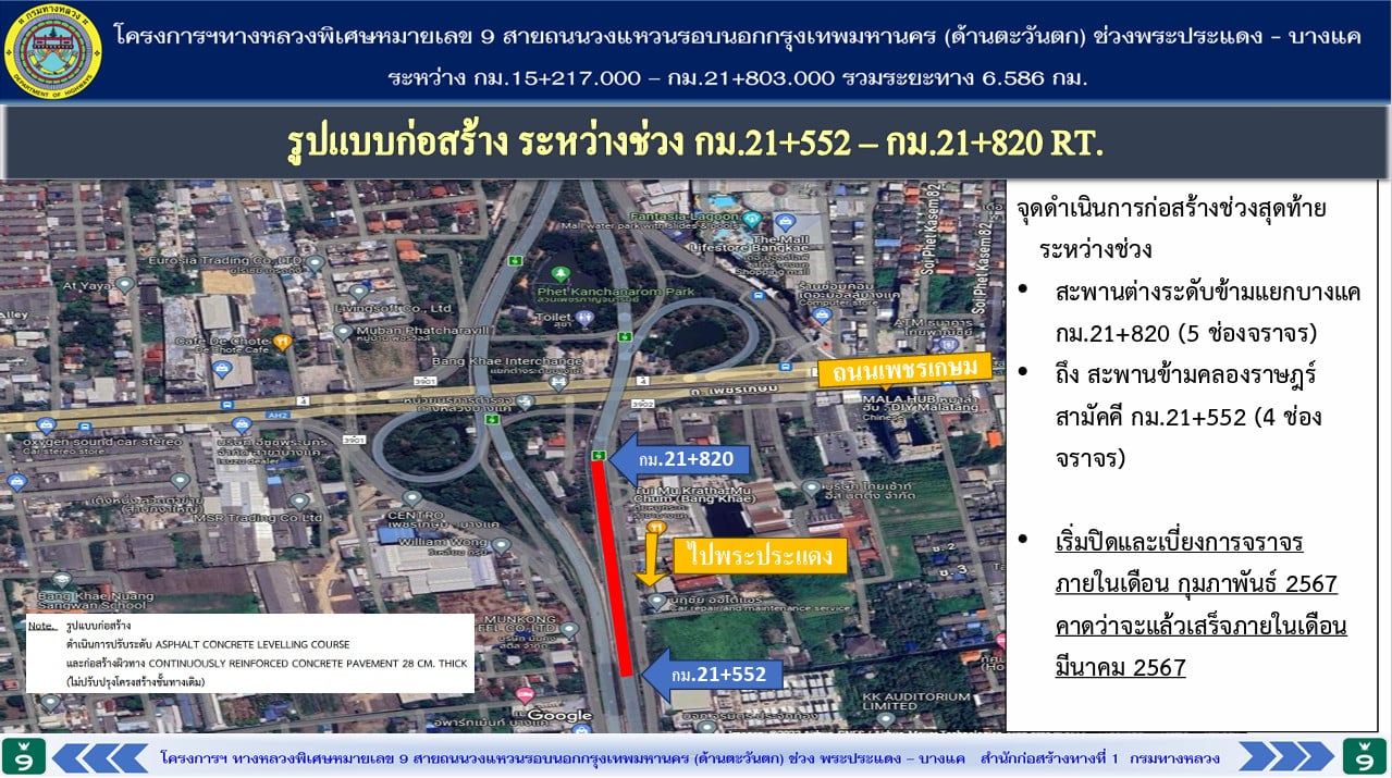 ผู้รับเหมาก่อสร้าง แจ้ง ปิดเบี่ยงจราจร ต่างระดับเพชรเกษม มุ่งหน้าไปพระราม 2 เป็นระยะเวลา 1 เดือน เพื่อซ่อมผิวจราจร ส่งผลให้จราจรติดขัด