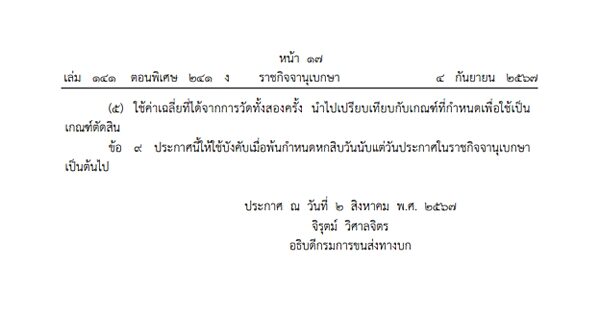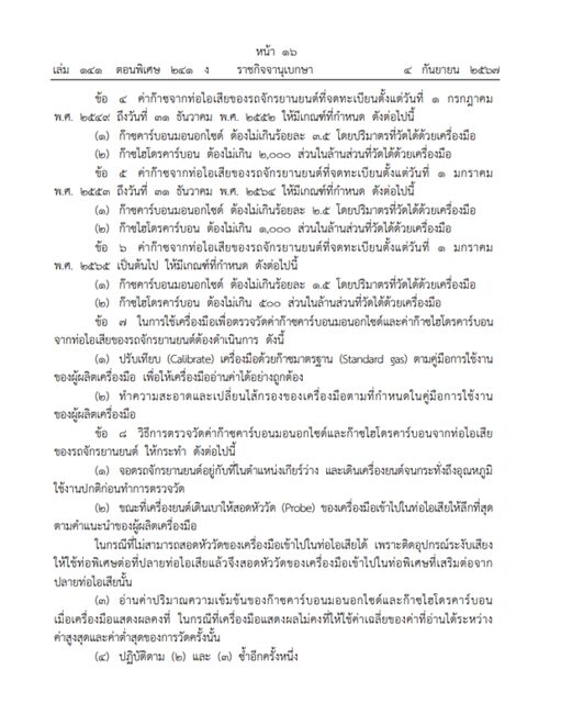 ราชกิจจาฯ ประกาศ กรมการขนส่งทางบก เรื่องกำหนดเกณฑ์ และวิธีตรวจสอบค่าก๊าซคาร์บอนมอนอกไซด์ และค่าก๊าซไฮโดรคาร์บอนจากท่อไอเสียรถจักรยานยนต์