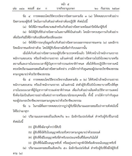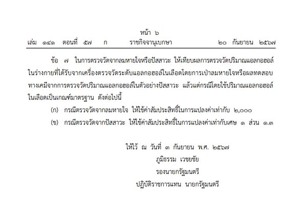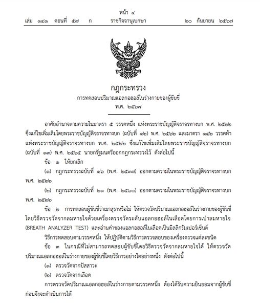 ที่มา :ราชกิจจาฯ ประกาศเพิ่มวิธีตรวจวัดปริมาณแอลกอฮอล์ในร่างกายผู้ขับขี่ - ข่าวสด (khaosod.co.th)