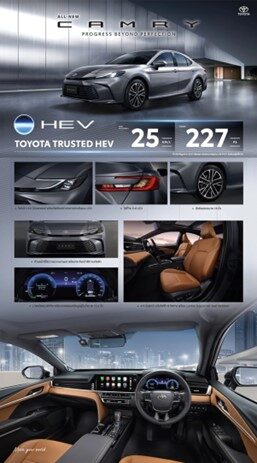บริษัท โตโยต้า มอเตอร์ ประเทศไทย จำกัด ตอกย้ำความเป็นผู้นำด้านรถยนต์ไฮบริด ด้วยแนวคิด “TOYOTA TRUSTED HYBRID” ที่สร้างชื่อเสียงและความไว้วางใจในประเทศไทยมาอย่างยาวนาน พร้อมยกระดับความมั่นใจ เป็นที่ยอมรับในระดับโลก โดยในครั้งนี้ได้มีการแนะนำ ALL-NEW CAMRY รถยนต์ Hybrid Medium Size Sedan สมบูรณ์แบบด้วยความหรูหรา สมรรถนะที่ดีเยี่ยม ฟังก์ชันอำนวยความสะดวกสบายครบครัน และมั่นใจได้ในระบบความปลอดภัยเหนือระดับมาตรฐานโตโยต้า