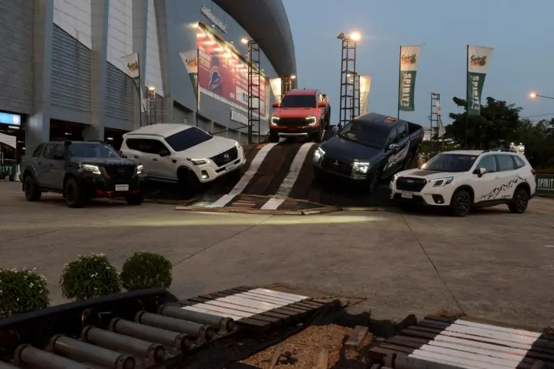 โรงเรียนพัฒนาทักษะการขับขี่รถขับเคลื่อน 4 ล้อ นำทีมครูฝึกมากประสบการณ์ ร่วมพูดคุยกับผู้สนใจรถขับเคลื่อน 4 ล้อ พร้อมแนะนำหลักสูตรฝึกอบรมทั้งแบบ Part Time และ Full Time ตลอดจนมีสนามจำลองสถานการณ์ต่างๆ บริเวณด้านนอกอาคาร ให้ทดลองนั่งก่อนตัดสินใจซื้อรถ