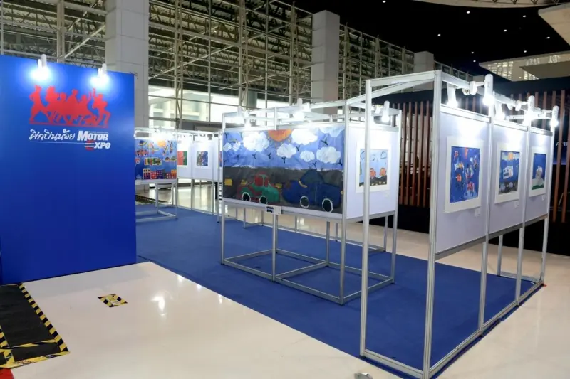 ชมนิทรรศการภาพวาดตามจินตนาการของเยาวชนที่เป็นสมาชิกชมรม “ศิลปินน้อย Motor Expo” ในหัวข้อ “จิตวิญญาณแห่งนวัตกรรม…ยานยนต์ล้ำอนาคต” (Innovative Spirit…Futuristic Vehicles)