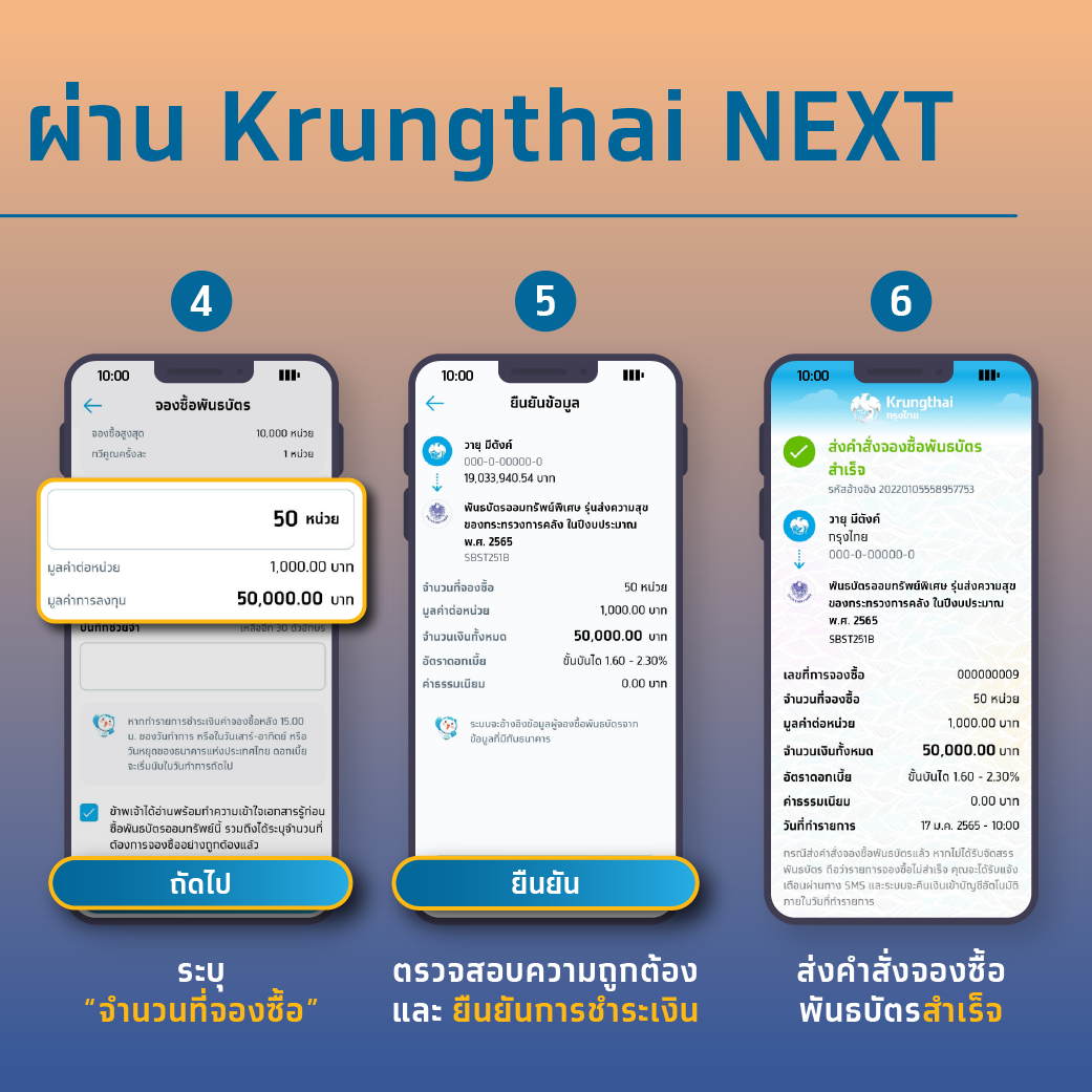 ขั้นตอนในการซื้อพันธบัตรฯ ผ่านแอพพ์ Krungthai NEXT