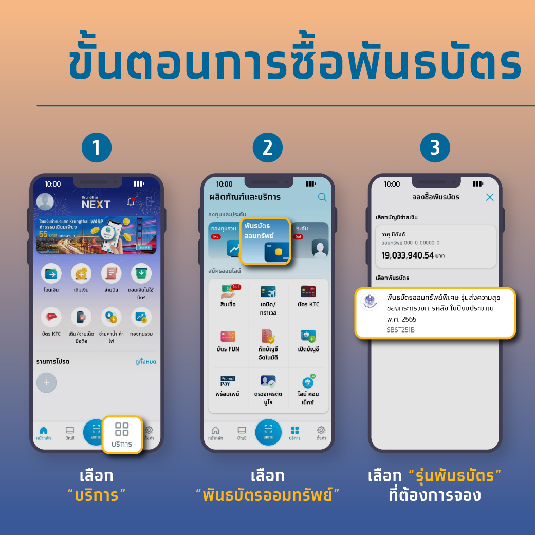 ขั้นตอนซื้อพันธบัตรออมทรัพย์ฯ รุ่นส่งความสุข