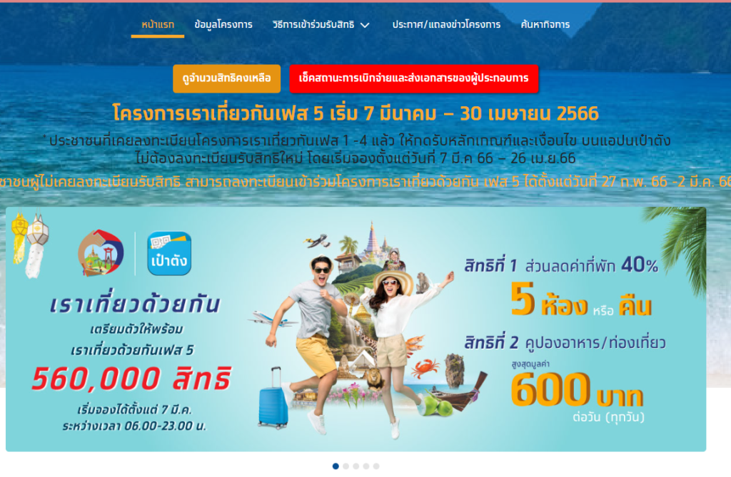 ที่มา : รีบเลย! เราเที่ยวด้วยกันเฟส 5 คึกคัก แค่ชั่วโมงแรกจองที่พักไปแล้วกว่า 6 หมื่นสิทธิ (matichon.co.th)