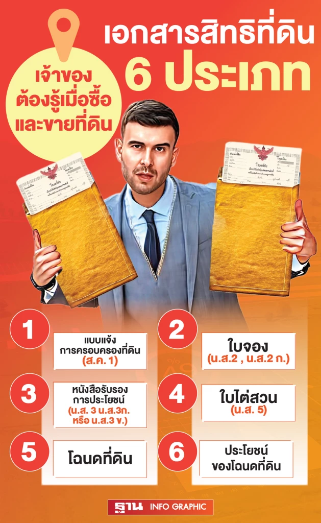 ที่มา : เอกสารสิทธิที่ดิน 6 ประเภท เจ้าของต้องรู้เมื่อซื้อ และ ขายที่ดิน (thansettakij.com)