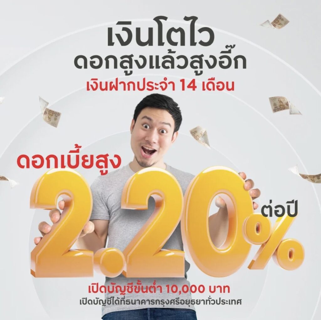 “ธนาคารกรุงศรีอยุธยา” จัดแคมเปญเงินฝากประจำระยะสั้นและระยะยาว เงินฝากปลอดภาษี ดอกเบี้ยสูง ประกอบด้วย