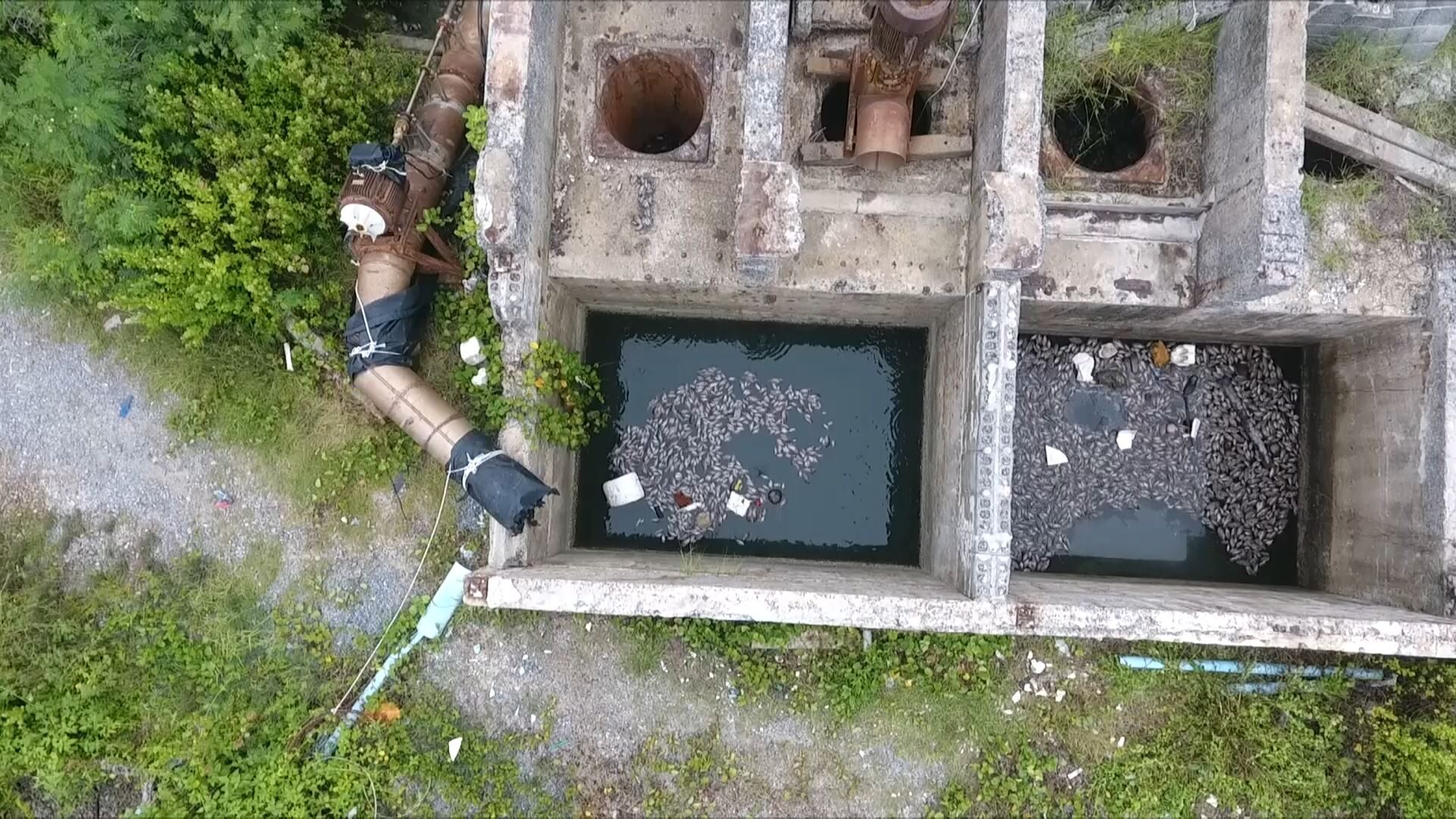 สำหรับต้นทางของปลาหมอคางดำจำนวนมาก อาศัยอยู่ที่บริเวณปลายท่อลงสู่ทะเล ย้อนขึ้นไปเพียงไม่ถึง 50 เมตร โดยมีสิ่งปลูกสร้างพร้อมระบบสูบส่งน้ำลงท่อจากทางน้ำที่อยู่เหนือขึ้นไปทางทิศตะวันตก พบว่ากลิ่นเหม็นรุนแรงเนื่องจากในบ่อพักก่อนออกสู่ทะเลพบซากปลาหมอคางดำจำนวนมาก และยังมีปลาหมอคางดำขนาดใหญ่กว่าปกติยังมีชีวิตอยู่เป็นจำนวนมากเช่นกัน พร้อมที่จะออกสู่ทะเลผ่านท่อได้ตลอดเวลา ส่วนภาพมุมสูงเส้นทางน้ำออกสู่ทะเลตามร่องรอยนั้นมีต้นทางมาจากฟาร์มขนาดใหญ่ที่อยู่เหนือขึ้นไปทางฝั่งตะวันตกของถนนสายปากพนัง-ไทร