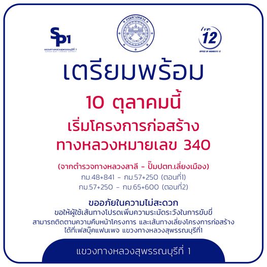 ที่มา :10 ต.ค.นี้ ปิดถนน 340 "บางบัวทอง-สุพรรณบุรี" 3 ปี สร้างใหม่ แนะทางเลี่ยง (prachachat.net)