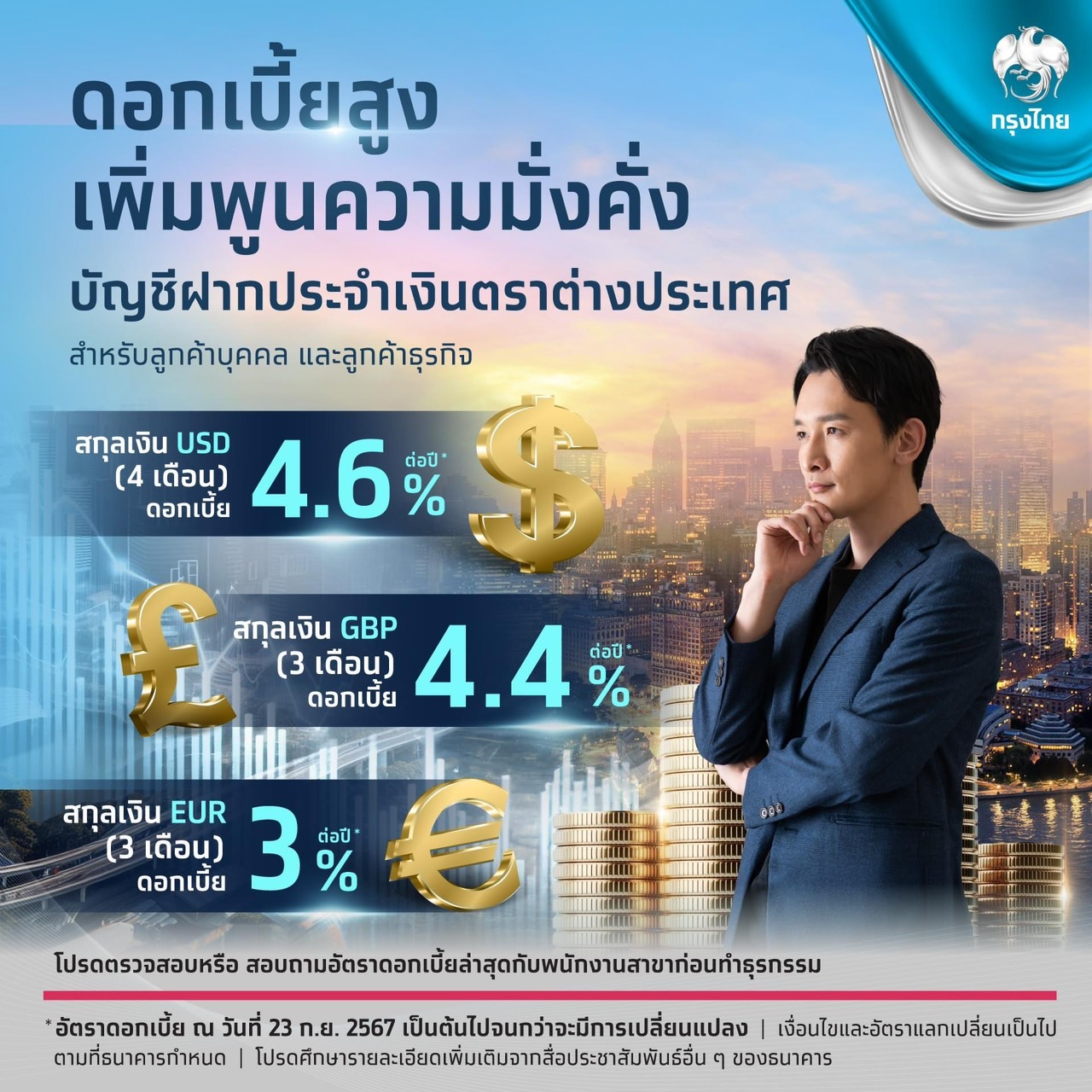 และ “ธนาคารกรุงไทย” ออกแคมเปญ เงินฝากเงินตราต่างประเทศ “Super FCD 3 in 1” ออม โอน ลงทุนในสกุลเงินต่างประเทศครบในบัญชีเดียว สำหรับลูกค้าบุคคลและลูกค้าธุรกิจ