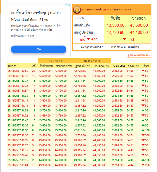 เมื่อวันที่ 25 พฤศจิกายน ผู้สื่อข่าวรายงานว่า ภาวะการซื้อขายทองคำประจำวันนี้ มีความผันผวนหนักมาก โดยเปิดตลาดซื้อขายเมื่อช่วงเช้าทันทีที่เปิดตลาดเมื่อเวลา 09.04 น.ราคาทองได้ปรับลดลงทันที 250 บาทโดยทองคำแท่งลงไปอยู่ที่ระดับ 44,000 บาทต่อบาททองคำ ขณะที่ทองรูปพรรณขายออกอยู่ที่ 44,500 บาทต่อบาททองคำ