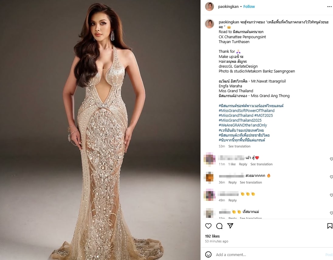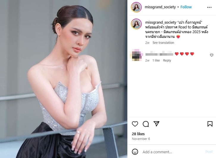 ด้านเพจนางงามต่าง ๆ ก็ได้โพสต์ภาพของ เปา กิ่งกาญจน์ และแจ้งข่าวการตัดสินใจมาเดินสายนางงามขึ้นเวทีชิงมงกุฎมิสแกรนด์ 2025 รอบคัดเลือกระดับจังหวัดด้วยเช่นกัน บอกเลยว่าการแข่งขันมิสแกรนด์อ่างทอง-นครนายก 2025 น่าจับตามองเป็นอย่างมากเลยทีเดียว