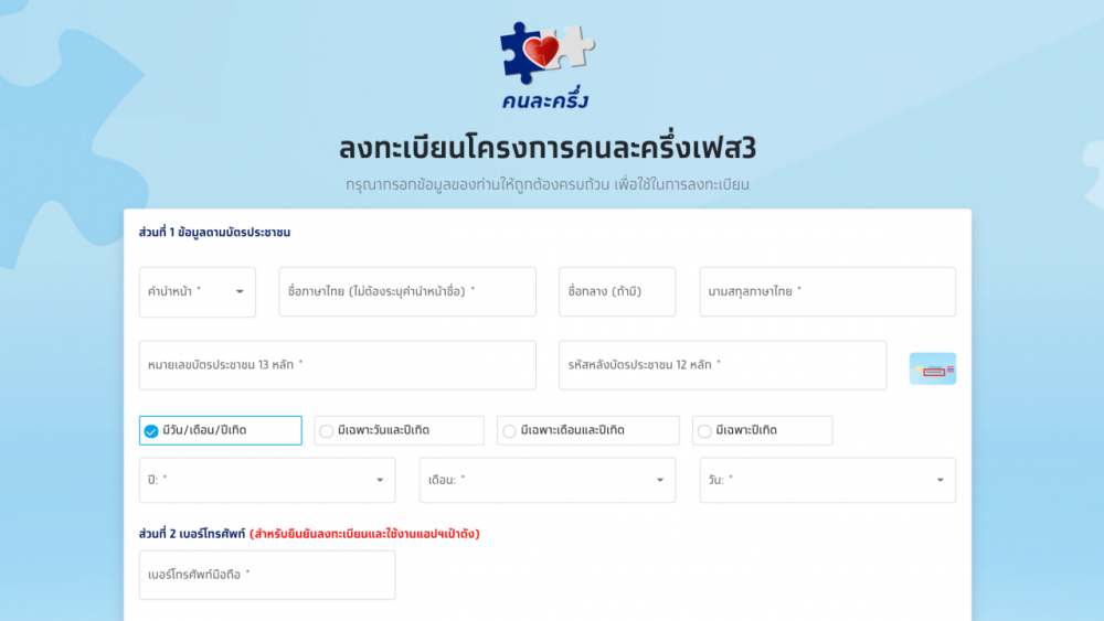 วิธีลงทะเบียน "คนละครึ่งเฟส 3"
