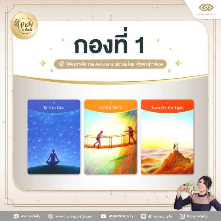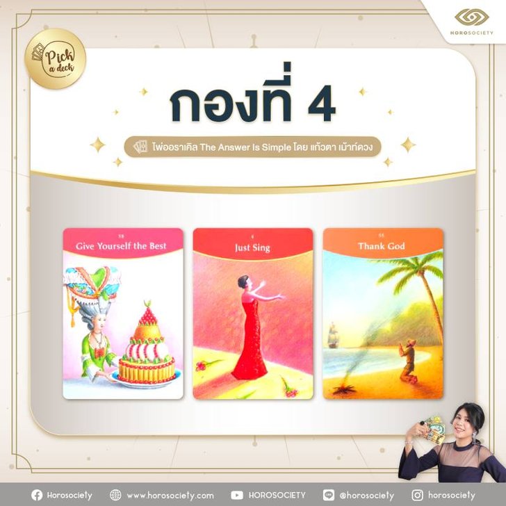 ตั้งจิตอธิษฐานแล้วเลือกไพ่ 1 กองจาก 4 กองนี้ แล้วไปดูคำทำนายกันเลยค่ะ