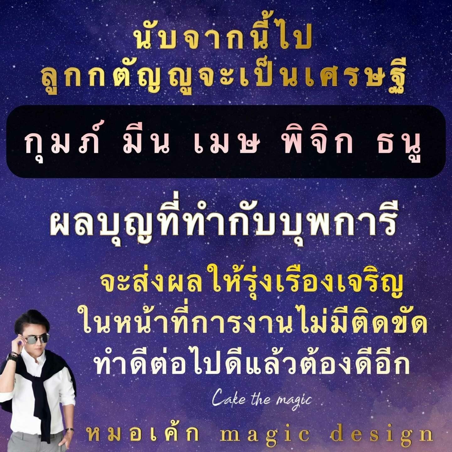 หมอเค้กMagic stone เผยถึงดวงชะตาราศี นับจากนี้ไปลูกกตัญญูจะเป็นเศรษฐี ผลบุญที่ทำกับบุพการี จะส่งผลให้รุ่งเรืองเจริญในหน้าที่การงานไม่มีติดขัด ทำดีต่อไปดีแล้วต้องดีอีก