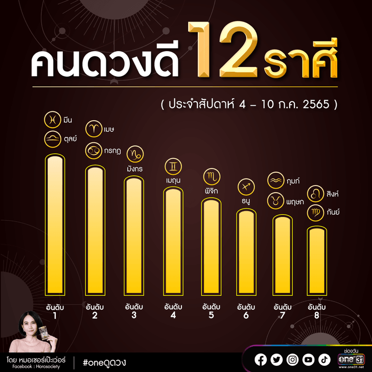 อันดับคนดวงดี 12 ราศี ช่วง 4-10 กรกฎาคม 2565นี้ ได้แก่