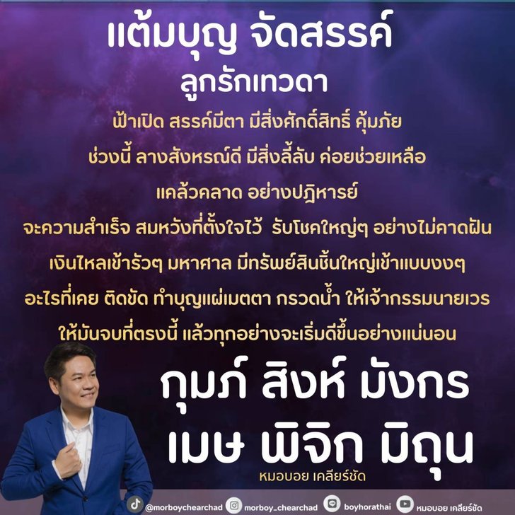 ราศีลูกรักเทวดา แต้มบุญหนุน สำเร็จดั่งปาฏิหาริย์ โดย หมอบอย เคลียร์ชัด