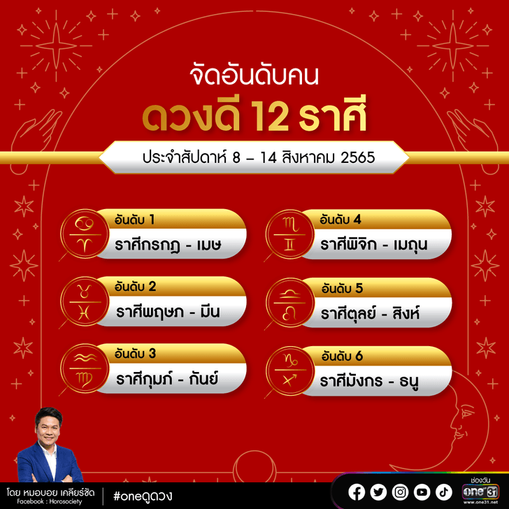 หมอบอย เคลียร์ชัด จัดอันดับคนดวงดี12 ราศี ช่วง 8 – 14 ส.ค. 65 มาดูกันว่าราศีเบอร์ต้น ๆ ใช่คุณหรือไม่