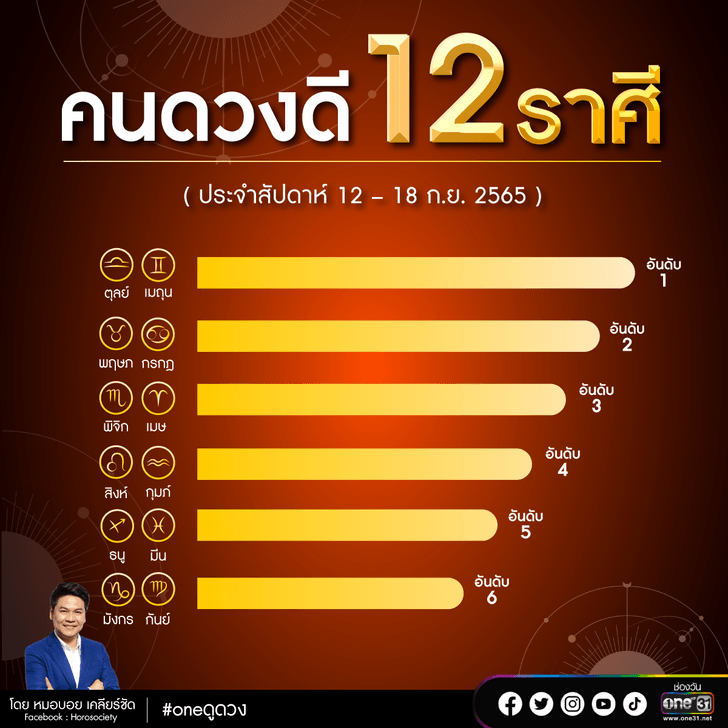 หมอบอย เคลียร์ชัด จัดอันดับคนดวงดี12 ราศี ช่วง 12 - 18 กันยายน 65 มาดูกันว่าราศีเบอร์ต้น ๆ ใช่คุณหรือไม่