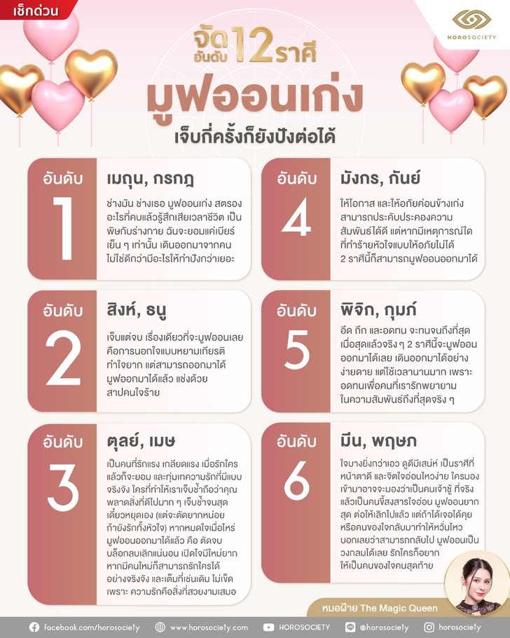 ที่มา : จัดอันดับ 12 ราศี มูฟออนเก่ง เจ็บกี่ครั้งก็ปังต่อได้ โดย หมอฝ้าย The Magic Queen (sanook.com)