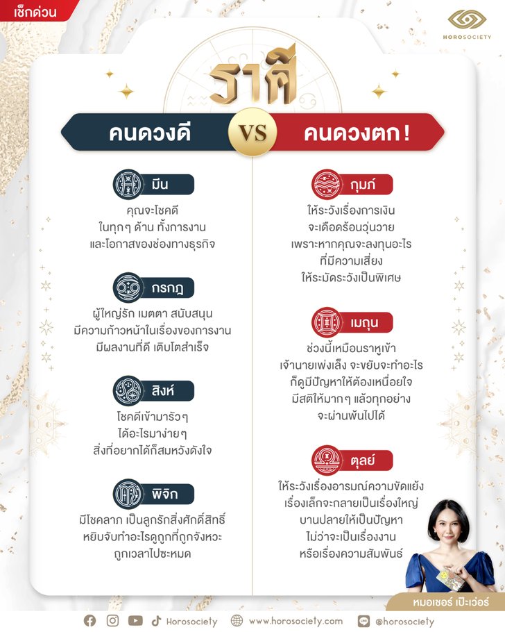 ที่มา : เช็กกันให้ไว! ราศีใดเป็นคนดวงดี VS คนดวงตก! โดย หมอเชอร์ เป๊ะเวอร์ (sanook.com)