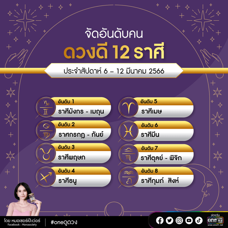 ที่มา : จัดอันดับคนดวงดี 12 ราศี ช่วง 6-12 มี.ค. 66 โดย หมอเชอร์ เป๊ะเวอร์ (sanook.com)