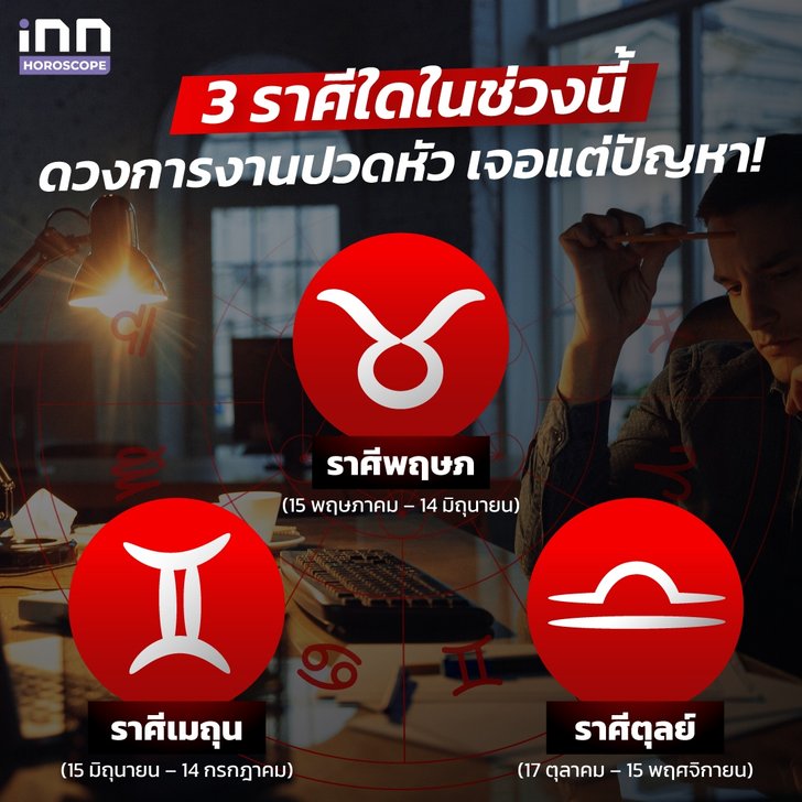 วันนี้ทีม iNN จะมาเตือนเรื่อง ดวงการงาน สำหรับ 3 ราศีใดที่ในช่วงนี้ ดวงการงานปวดหัว เจอแต่ปัญหา! ว่าแต่จะมีราศีของคุณรวมอยู่ด้วยไหม ไปอ่านกันเลย