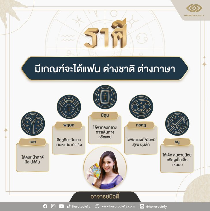 อ.บิวตี้ ทำนายทายทักถึงราศีที่มีเกณฑ์จะได้แฟน ต่างชาติ ต่างภาษา ได้แก่