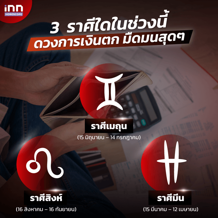 วันนี้ทีม iNN จะมาเตือน สำหรับ 3 ราศีใดที่ในช่วงนี้ ดวงการเงินตก มืดมนสุดๆ ว่าแต่จะมีราศีของคุณรวมอยู่ด้วยไหม ไปเช็กกันเลย