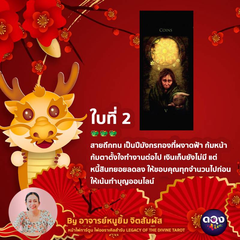 สายถึกทน เป็นปีมังกรทองที่ผงาดฟ้า ก้มหน้าก้มตาตั้งใจทำงานต่อไป เงินเก็บยังไม่มี แต่หนี้สินทยอยลดลง ให้ขอบคุณทุกจำนวนไปก่อน ให้เน้นทำบุญออนไลน์