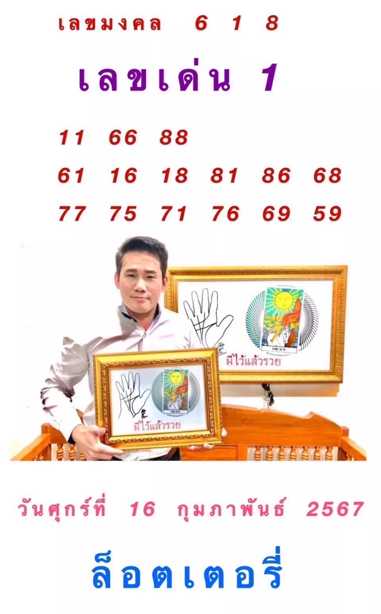 ที่มา : หวย 16 ก.พ. 67 อ.มงคล เปิดไพ่ยิปซี เผยฤกษ์ดี สีมงคล เลขเด่นงวดนี้ (thairath.co.th)