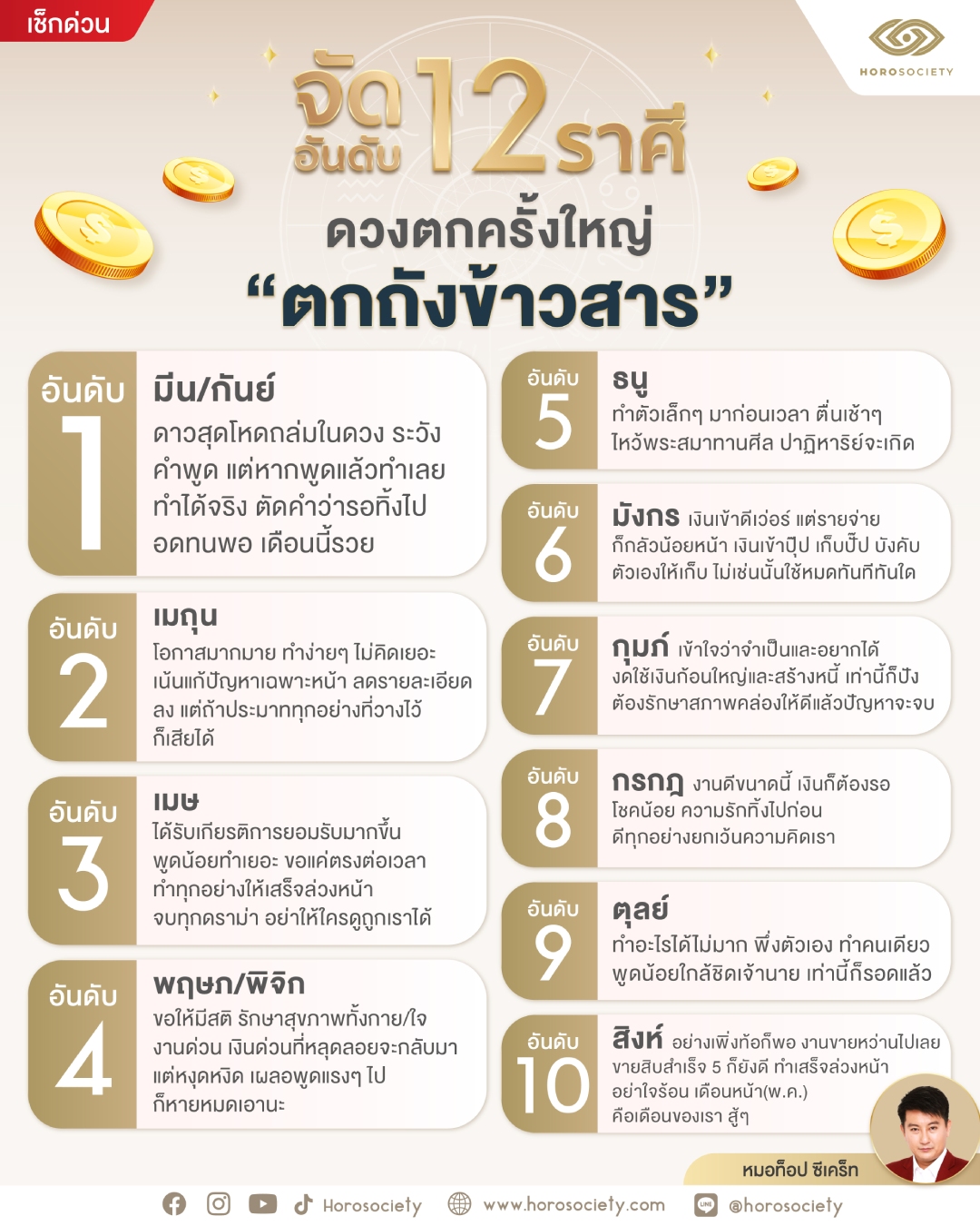 จัดอันดับ 12 ราศี ดวงตกครั้งใหญ่ “ตกถังข้าวสาร” โดย หมอท็อป ซีเคร็ท