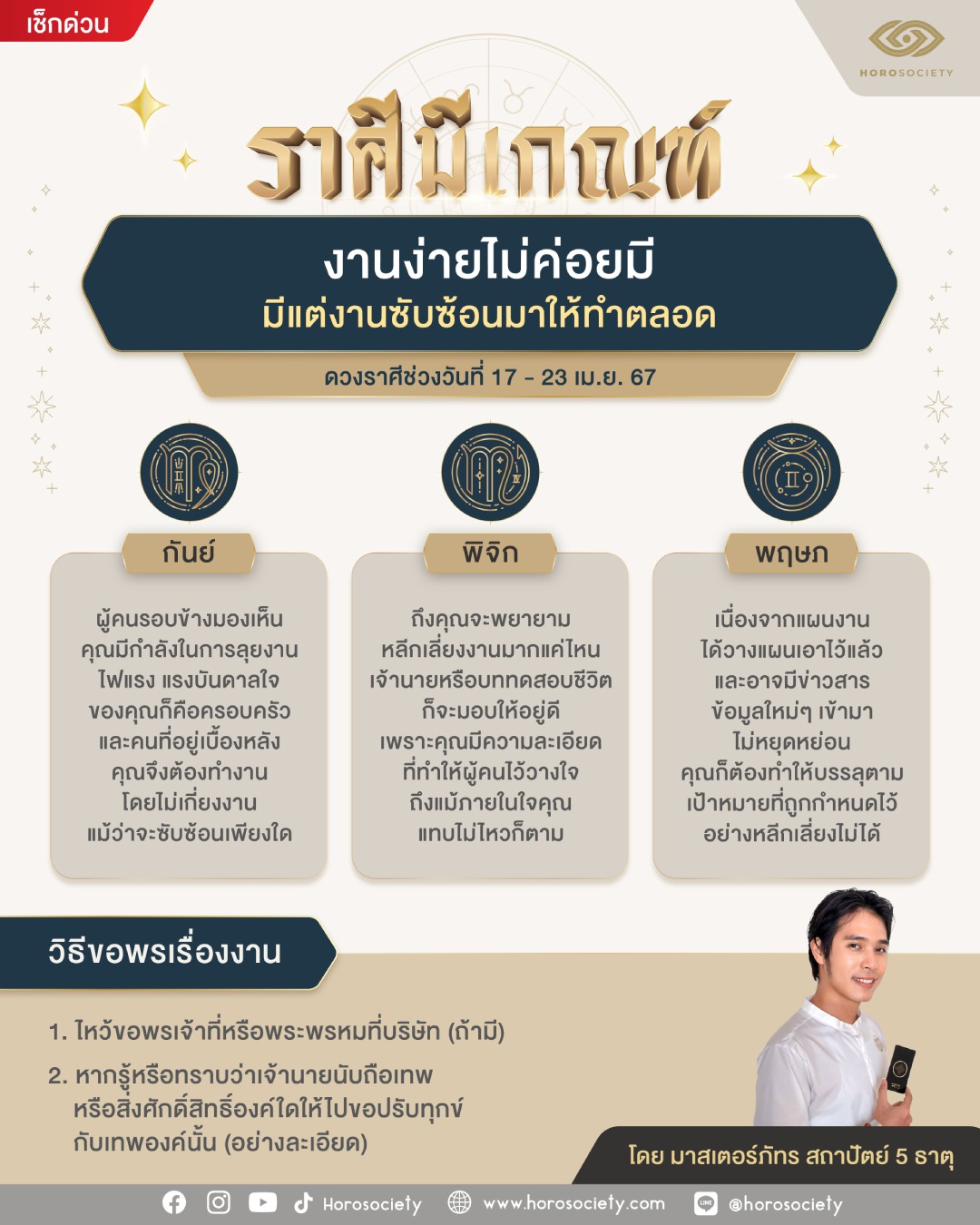 ที่มา: ราศีใดงานง่ายไม่ค่อยมี แต่งานซับซ้อนมีมาตลอด โดย มาสเตอร์ภัทร