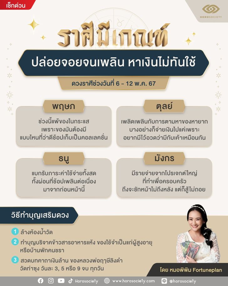 ที่มา : ราศีมีเกณฑ์ ปล่อยจอยจนเพลิน หาเงินไม่ทันใช้ โดย หมอพิพิม Fortuneplan (sanook.com)