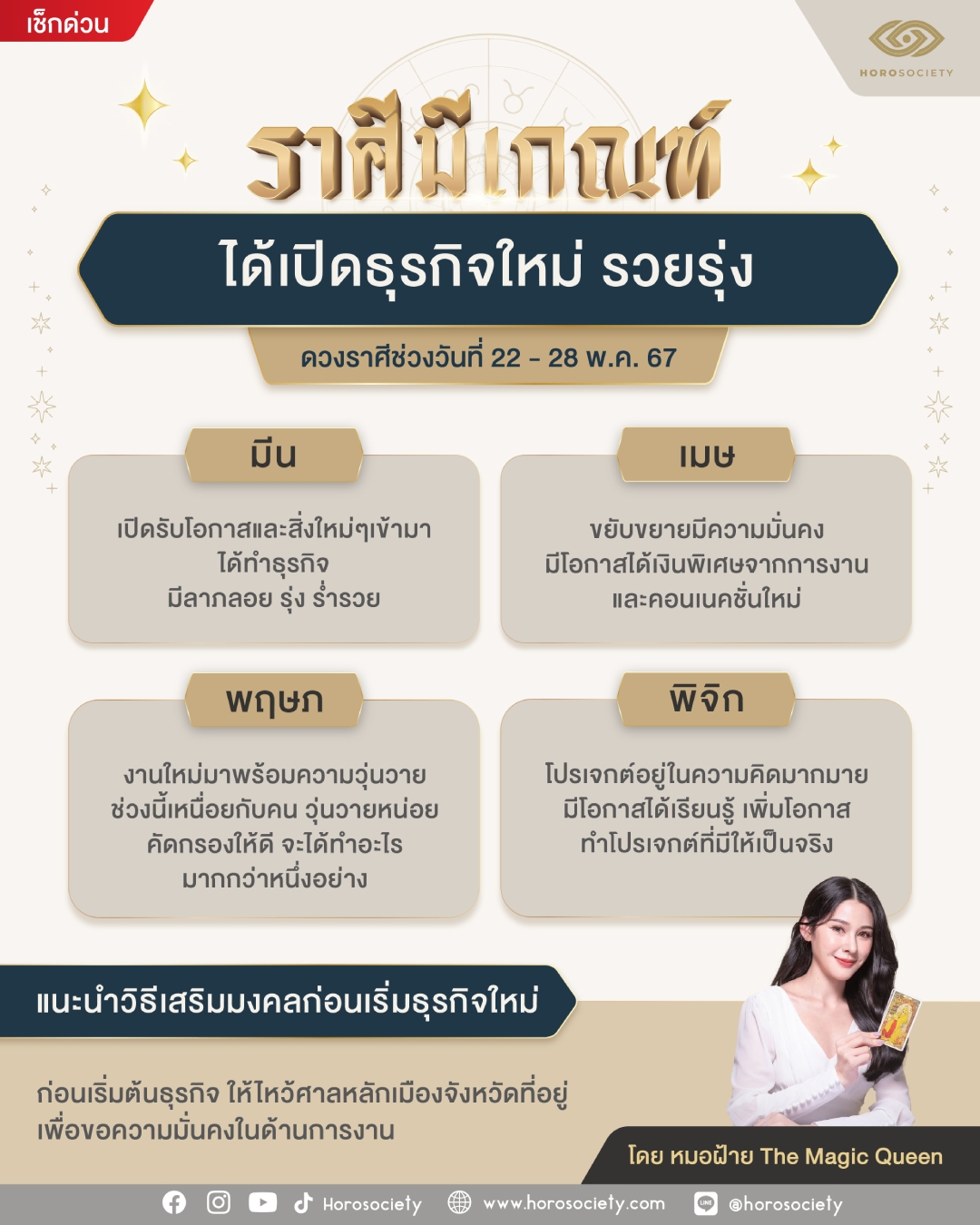 ราศีมีเกณฑ์ได้เปิดธุรกิจใหม่ รวยรุ่ง โดย หมอฝ้าย The Magic Queen