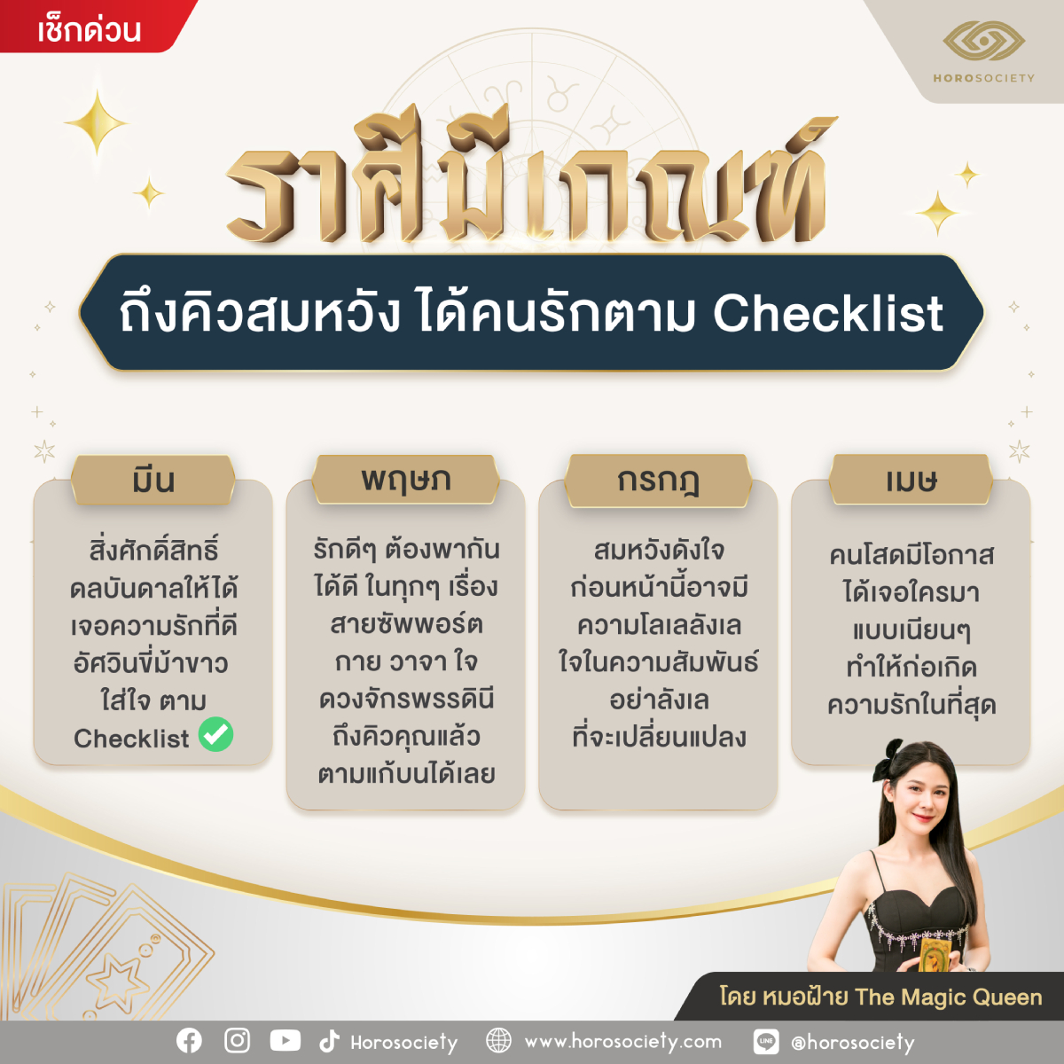 ราศีมีเกณฑ์ ถึงคิวสมหวัง ได้คนรักตาม Checklist โดย หมอฝ้าย The Magic Queen