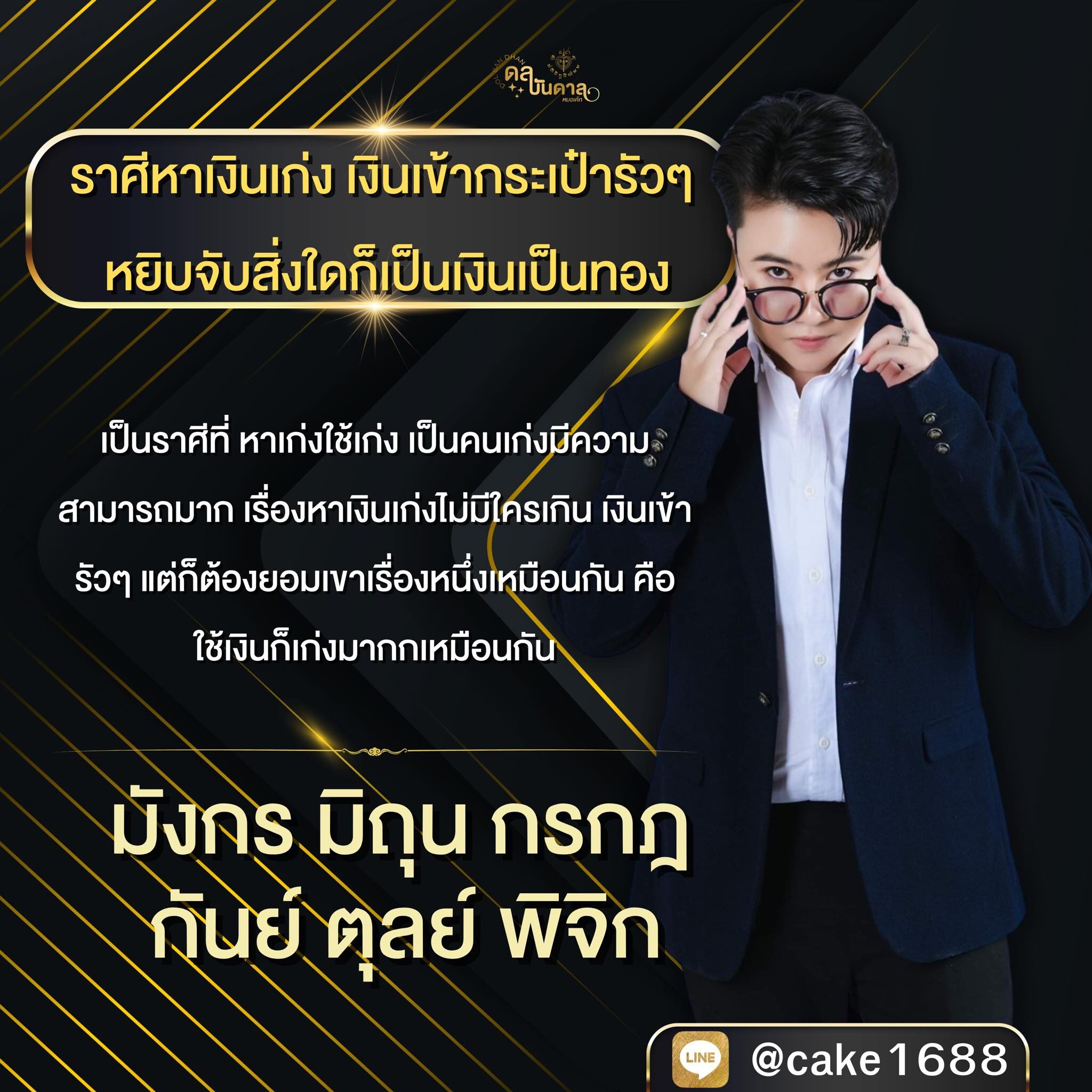 หมอเค้ก เผยในเพจ Cake The magic ถึง ดวงชะตา ราศี หาเงินเก่ง เงินเข้ากระเป๋ารัวๆ หยิบจับสิ่งใดเป็นเงินเป็นทอง ถือเป็นราศีหาเก่งใช้เก่ง เป็นคนเก่งที่มีความสามารถมาก เรื่องหาเงินไม่มีใครเกิน เงินเข้ารัวๆ แต่ก็ต้องยอมเรื่องหนึ่งคือใช้เงินเก่งมากเหมือนกัน