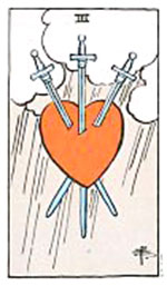 อิทธิพลของไพ่ 3 ดาบ (Three of Swords) คุณจะทำงานอย่างเครียดๆเพราะมีปัญฆากับเพื่อนร่วมงาน ส่วนคนค้าขายให้ระวังข้อสัญญา ด้านการเงินถ้าให้ใครหยิบยืมคงต้องทำใจ และโชคการเสี่ยงจะได้ไม่คุ้มเสีย ด้านความรักให้ระงับเหตุเพราะความเจ้าอารมณ์ คนรักจะเริ่มหมดความอดทน ส่วนที่มีปัญหากันอยู่คุณต้องลดทิษฐิ ถึงจะมีทางกลับมาคืนดีกัน ช่วงนี้ควรทำบุญไหว้บูชาพระธาตุพนมเพื่อเสริมดวงชะตาตนเอง