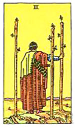 อิทธิพลของไพ่ 3 ไม้เท้า (Three of Wands) คุณที่มีงานส่วนตัวได้งานใหญ่เข้ามา ทำให้กิจการเดินหน้าไปได้ด้วยดี และคนที่ทำงานประจำผลงานโดดเด่นเป็นที่ยอมรับของเจ้านาย ด้านความรักคนโสดจะพบรักโดยไม่คาดฝัน ส่วนที่มีแฟนแล้วปัญหาจะมีเหตุเพราะต่างยึดตนเองเป็นที่ตั้ง ด้านการเงินพอมีหมุนเวียน แต่โชคการเสี่ยงไม่ค่อยเด่น ควรไปทำบุญกับโรงพยาบาลเพื่อเสริมดวงชะตาตนเอง