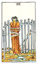 อิทธิพลของไพ่ 8 ดาบ (Five of Swords) คุณจะมีปัญหากับเพื่อนร่วมงานเหตุเพราะความมั่นใจตนเองเกินของเรา มีผลทำให้งานผิดพลาดอย่างแรง และคนที่มีกิจการส่วนตัวจะมีปัญหาเรื่องการเงิน ทำให้กิจการเดินหน้าไม่ค่อยได้ ด้านความรักมีปัญหาเพราะความหึงหวง ดังนั้นควรปรับตัวเสียใหม่ ด้านการเงินจะเสียเงินจากเรื่องไม่เป็นเรื่อง และคนที่เล่นหุ้นเหตุเพราะความพะว้าพะวงจะทำให้ชวดเงินก้อนใหญ่ ช่วงนี้ควรทำบุญไหว้บูชาหลวงพ่อโสธรเพื่อเสริมดวงชะตาตนเอง