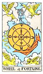 อิทธิพลของไพ่กงล้อมหาสมบัติ (Wheel of Fortune) คุณจะมีโชคลาภจากคนใกล้ชิด และคนลุ้นสิ่งของมีค่าจะสมหวัง ด้านการงานผลงานเข้าตาเจ้านายพึงพอใจ แต่อย่าใส่ใจกับพวกที่อิจฉาเรา และที่มีงานส่วนตัวกิจการไปได้ดีมีคนให้การสนับสนุน ด้านความรักคนที่ยังโสดจะได้พบรักกับคนอ่อนวัยกว่า และคนที่มีอยู่กินกันมานานจะมีบุตรโดยมิได้ตั้งใจ ควรทำบุญไหว้บูชาพระสิวลี