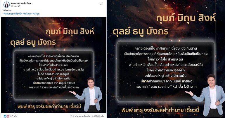 เปิดดวงช่วงกลางเดือนนี้ไป หมอบอย เคลียร์ชัด โพสต์ 6 ราศีเตรียมรับความปังว่า “กลางเดือนนี้ไป ราศีเถ้าแก่เนี้ยจับ ปังเกินต้าน เป็นจังหวะโอกาสทอง ที่ต้องกอบโกย หยิบจับอะไรเป็นเงินเป็นทอง ไม่มีคำว่าไม่ได้ สำหรับฉัน”