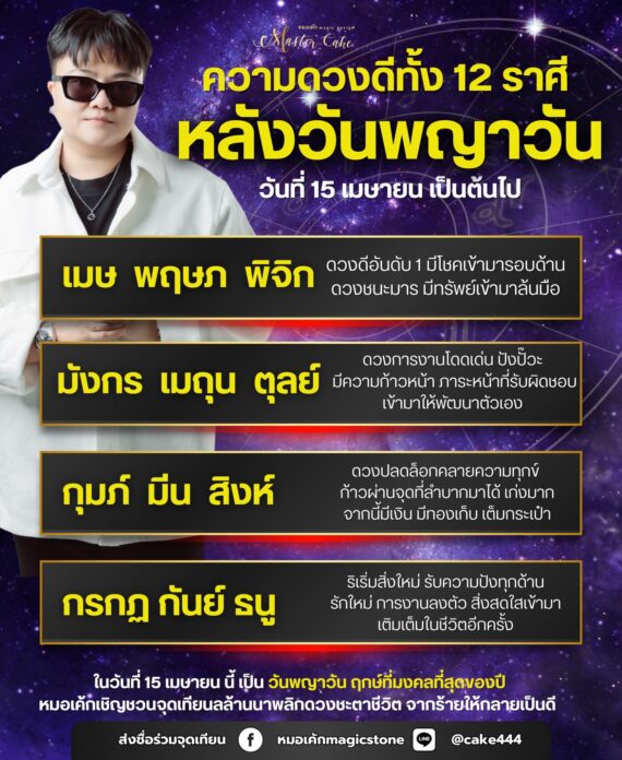 หมอเค้กMagic stone เผยถึงความดวงดีของทั้ง 12 ราศี หลังช่วงวันที่ 15 เมษายน เป็นวันพญาวัน