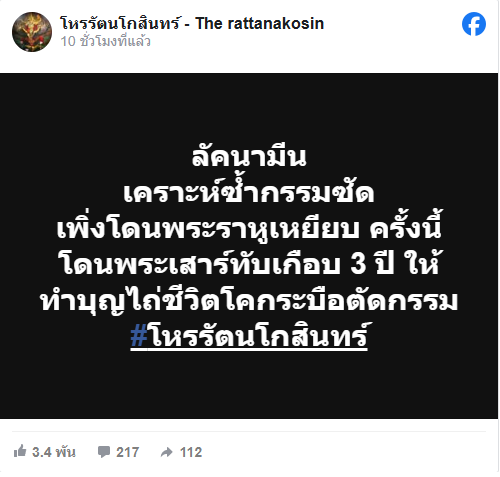 เช็กดวง จาก โหรรัตนโกสินทร์ ที่ล่าสุด ได้โพสต์เฟซบุ๊ก เผยถึงของลัคนามีน ที่มีดวงเคราะห์ซ้ำกรรมซัด พร้อมเผยคำแนะนำ ให้ดวงชะตาดีขึ้น โดยมีคำทำนายดังนี้