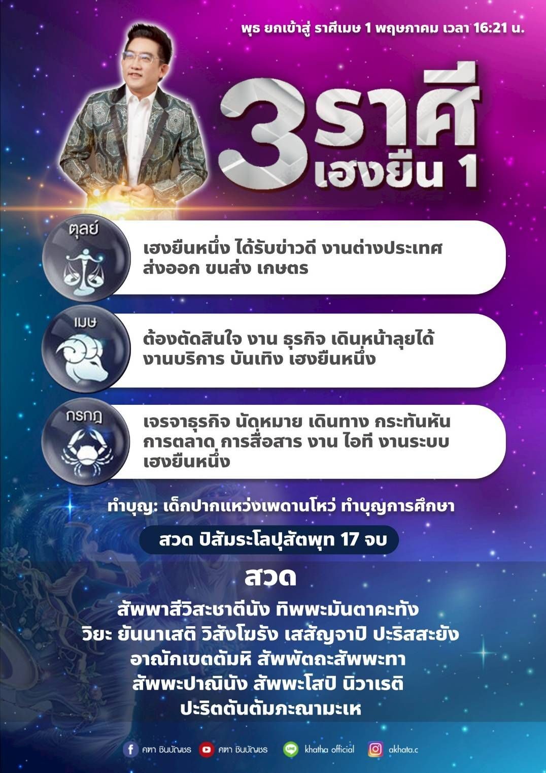 อ.คฑา ชินบัญชร เผยดวง 3 ราศีเฮงยืนหนึ่ง งานเจรจาธุรกิจ นัดหมายสุดปัง การสื่อสาร งานไอที งานระบบ งานบริการ งานบันเทิง เฮงยืนหนึ่ง